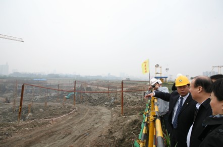 图二:视察“武汉中心”项目基坑施工现场