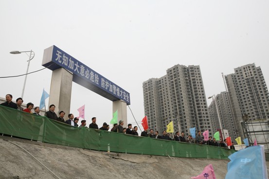 图二为省、市领导视察泛海城市广场一期项目工地。