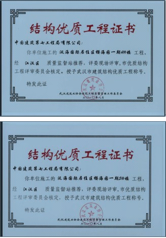 近日,武汉CBD泛海国际居住区•樱海园一期项目被市建筑业协会授予“武汉市建筑结构优质工程”称号,并获《结构优质证书》。