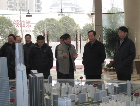 近日,新当选武汉市政府的副市长胡立山、副市长刘立勇在商务区管委会和公司领导的陪同下,先后视察了武汉CBD。胡副市长、刘副市长深入武汉中心、泛海城市广场、泛海国际SOHO城等重点建设项目的施工现场,实地查看工程建设进展情况,并听取了武汉公司总裁吴道缘关于武汉CBD总体规划介绍和重点开发项目的工程建设进展情况汇报。市领导对武汉CBD开发建设工作给予了充分肯定,同时希望尽快建成武汉CBD,为大武汉复兴和全市经济社会发展贡献力量。