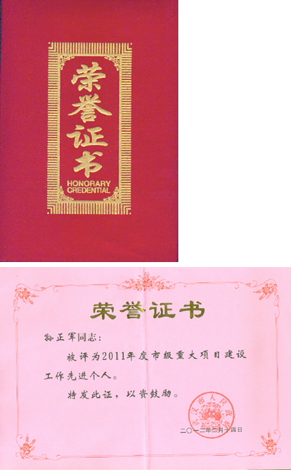 图二:公司总裁助理、泛海城市广场开发投资有限公司总经理孙正军获“先进个人”荣誉证书。