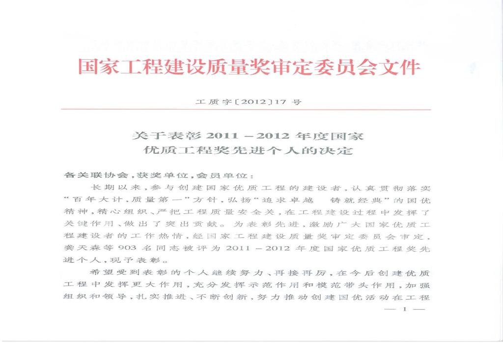 据悉,国家优质工程奖组委会将于12月底在北京人民大会堂隆重举行表彰大会。