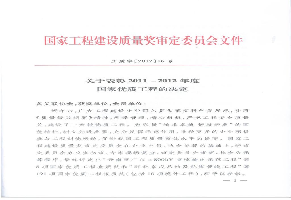 国家优质工程奖是中华人民共和国优质产品奖(简称国家质量奖)的一部分,是工程建设质量方面的最高荣誉奖励,评选范围涵盖建筑、铁路、公路、化工、冶金、电力等工程建设领域的各个行业,是企业向往、社会知名、专家认可、实践过硬的国家荣誉,由国家发改委直属的中国施工企业管理协会负责组织评选。