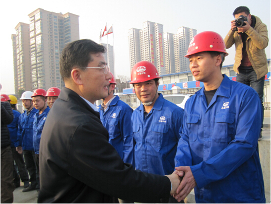 2015年2月13日,湖北省副省长曹广晶、省建设厅厅长尹维真率省、市、区住建部门领导,在春节前夕莅临武汉中央商务区建设工地现场,考察调研省重点工程建设情况,并慰问一线工程技术人员和职工。武汉市副市长张光清,江汉区区长张俊勇,公司监事会主席陈贤胜、总裁吴立峰、副总裁王军等一行陪同考察接待。
